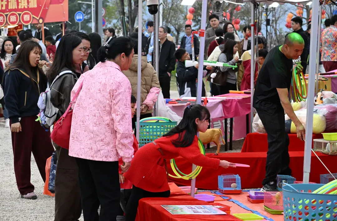 大年初一,鼎湖朝阳里·湾区中国村(五福村)化身沉浸式年味乐园,春禧市集、财神巡游、非遗打铁花等活动轮番上演,青砖黛瓦的古村街巷里游人如织,处处洋溢着喜庆热闹的新春气息。