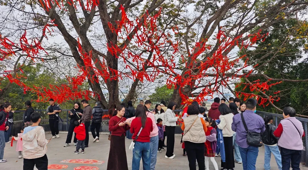 大家系上红绸,写下新年心愿;